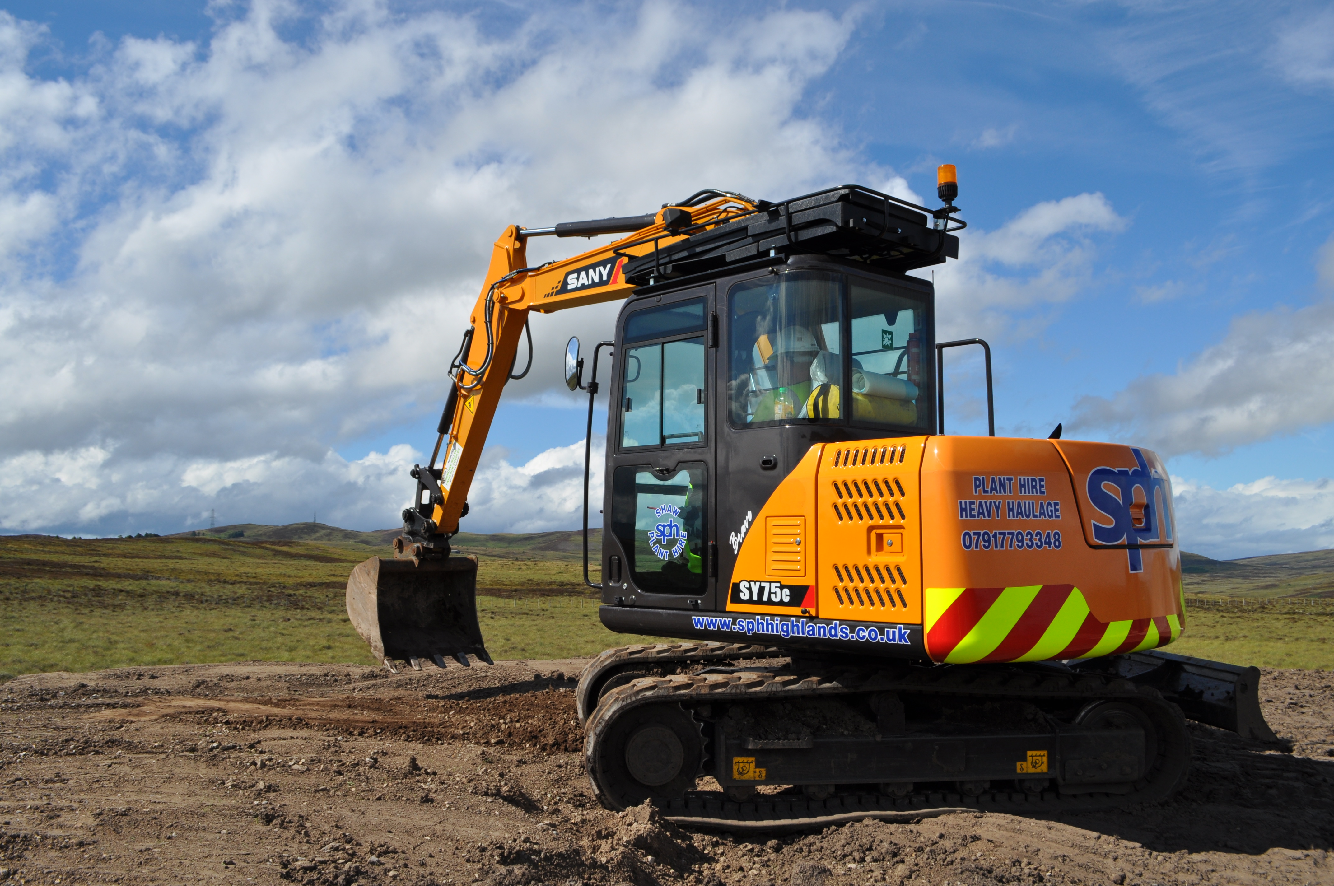 Mark is the owner of Ardgay based Shaw Plant Hire; a small plant hire and heavy haulage firm which specialises in contracting and hire jobs.  The SANY SY75C was originally purchased to work on infrastructure projects which were required for the many hydro-schemes being built at the time. Since then the 7.5t digger has been used on many projects ranging from civils works, estate maintenance and general hire.